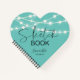 Customisez ce joli et élégant carnet d'esquisses avec vos détails personnels. Coeur de couleur turquoise avec lumières à cordes.