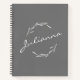 Ce carnet élégant et personnalisé présente une élégante couronne botanique minimaliste en gris. Personnalisez-le avec votre nom en écriture de script. Super idée cadeau.
