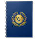 Ce carnet en spirale personnalisé est doté d'un cadre de couronne de laurier en monogramme doré. Personnalisez avec votre monogramme, nom ou autre texte désiré. Si vous souhaitez modifier la couleur bleue de l'arrière - plan, la police ou la police, après avoir sélectionné "personnaliser", faites défiler vers le bas et trouvez "Cliquez pour customiser plus loin". Vous trouverez ici d'autres options de personnalisation.
