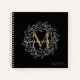 Carnet Élégante Fille Noire Florale Or Monogramme Nom