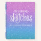 Une belle parties scintillant en faux violet et bleu personnalisées 8,5 x 11 sketchbook. Les mots "The Fabulous sketches of" dans une police dessinée à la main personnalisée avec votre nom ci-dessous. Customisez le carnet d'esquisses avec le nom de votre choix pour que quelqu'un se sente spécial. Fait un cadeau amusant pour les anniversaires ou pour Noël. Vient dans une variété de couleurs. Conçu pour vous par Blackberry Boulevard.