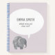 Un éléphant gris mignon avec une simple bulle vocale blanche sourit sur un arrière - plan violet lilas pâle. Personnalisez le texte pour en faire un carnet amical pour enfants parfait pour l'école ou la maison. N'oubliez pas d'ajouter vos coordonnées en coque le carnet se perd quelque part.