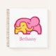 Un éléphant de mère stylisé et coloré qui embrasse son carnet de veau. Customisez avec le nom de votre choix, cet exemple indique Bethany. Art graphique et design original par www.mylittleeden.com sur Zazzle.