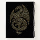 This notebook features an elaborate Celtic dragon formed entirely from continuous knotwork, symbolizing strength, continuity, and ancient guardianship. Rendered in a refined palette of dark emerald, antique bronze, and charcoal black, the design balances bold presence with heritage restraint. Subtle, old-world print distress and softened edges evoke timeworn craftsmanship without compromising clarity. Flat, print-first artwork on a black background makes this piece ideal for those drawn to myth, tradition, and timeless Celtic symbolism.