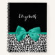 Personnalisez en ajoutant le nom de n'importe quelle fille à ce bloc-notes empreinte de léopard noir et blanc tendance de 8,5x11''' avec un ruban vert émeraude ceinturé attaché dans un joli arc. Ce design poster de animal élégant est une image à impression plat, et ne contient pas de ruban réel.