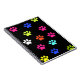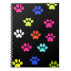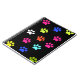 Ce design présente des empreintes de pattes multicolores en blanc, violet, vert, rose, bleu, jaune et orange sur un arrière - plan noir.