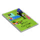 Ce Carnet rétro rétro à couple de Noël urbain personnalisable présente le dessin d'un élégant appartement de grand standing décoré pour les vacances avec des brins de lumières colorées de Noël et un kitsch, rose, arbre de Noël, avec des ornements turquoises et une étoile jaune. L'appartement dispose d'un sol vert et d'un mur en briques vertes. Sur le mur, quatre classiques Movie Martini Stretched Canvas Prints, également disponibles au magasin Zazzle de StrangeLittleOnion (conseil, conseil!). Trois estampes sont réalisées avec des arrière - plans turquoise et l'une est sur un arrière - plan noir. Sous les imprimés en toile, se trouve un canapé bleu du milieu du siècle moderne. Sur le canapé, une beauté sophistiquée aux cheveux raven vous attend. Elle porte une robe rouge vibrante et un chapeau de Père Noël. D'une part, elle tient une branche de faux orteils attachée avec un arc rouge. De l'autre côté de la pièce se trouve un homme suave, grand, sombre et beau. Il porte un costume noir, une chemise blanche et une cravate rouge. D'un côté, il tient un album vinyle, et de l'autre, il tient une couverture amusante. Au sol, un ottoman orange tient un lecteur de disques vert et noir. Propped against the ottoman est une autre pochette d'album avec un disque qui sort du côté. Il y a aussi trois albums de vinyle colorés éparpillés au sol. Derrière l'homme, on peut voir, à travers des portes coulissantes en verre, la neige tomber sur un balcon vert et la ville en dessous. Un chat blanc portant un arc rouge autour du cou est perché au bord du balcon. Au-delà du chat, vous découvrirez une ville à couper le souffle, avec des gratte-ciel et une lune jaune croissant. Remplacez simplement le texte existant par le vôtre. Si c'est ainsi que vit l'autre moitié, inscrivez-moi !