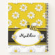 Personnalisez ce carnet en spirale joyeux avec ses motifs de marguerites jaunes et blanches brillantes accentués d'une grosse abeille bourdonnante mignonne. Modifiez simplement avec votre propre nom ou autre texte dans l'éditeur Zazzle facile à utiliser. Choisissez parmi 10 styles de papier différents à l'intérieur.