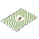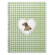 Un motif de style champêtre mignon avec une photo d'un en vichy chien marron courbé au milieu d'un coeur blanc cousu sur un arrière - plan en vichy vert sage.