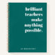 Un design minimaliste pour les enseignants avec une typographie rétro vintage "des professeurs brillants rendent tout possible" en blanc sur un arrière - plan vert tendance. Le cadeau parfait pour n'importe quel enseignant !