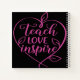 Belle calligraphie en prune profonde disant "Enseigner. Amour. Inspirer." avec une ligne de séparation coeur ou crayon. Parfait pour les cadeaux d'enseignants, la décoration de classe ou les vêtements inspirants.