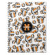 Cette équipe de volleyball couleurs carnet spiral conçu pour les filles dispose d'un motif de taille variée stylisé noir, orange et blanc volleyballs tournés partout - les panneaux de volleyball noir et orange sont mélangés avec un motif artistique, girly floral - personnaliser avec le nom de l'athlète et le monogramme ou le numéro de maillot - par katz_d_zynes