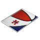 Ce carnet en spirale de basket sportif présente l'image d'un basketball réaliste, abstraitement surdimensionné avec alternance de panneaux recolorés rouge, blanc et bleu - nom de l'athlète et monogramme, lettre de variété ou numéro de maillot sont personnalisables sur la couverture - par katz_d_zynes