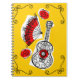 Un design fantaisiste de style rétro avec des souvenirs de vacances espagnoles, une guitare en fer forgé, un ventilateur en dentelle et une rose rouge. Un design personnalisable en noir, blanc, rouge et jaune doré pour que vous personnalisiez avec vos propres textes, images et idées. Une image art numérique originale.