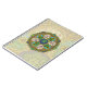 Des arcs de style Art Nouveau entourent les couches de vitraux de ce mandala, avec des feux d'artifice, des tournesols, des coquillages, des soleils et des tempêtes aux couleurs vives pour incarner l'activité de l'été.