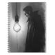 Une ampoule lumineuse illumine une pièce sombre. La scène est maussade, avec des rayons de lumière doux qui rehaussent l'atmosphère étrange et surréaliste.