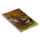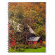 La brillance d'une journée ensoleillée d'automne est célébrée sur ce magnifique carnet de photographie d'art. Voici une grange pourpre dans une vallée au fond d'une colline qui est couverte de belles couleurs de feuillage d'automne de rouge, orange, jaune, or et vert. La photographie a été améliorée pour créer un effet impressionniste et artistique.