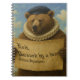 A bear in a Shakespeare neck ruff and hat, it is holding a scroll that quotes William Shakespeare from A Winter's Tale "Exit, pursued by a bear" in this generative content funny art piece.