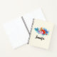 Carnet spiral avec un bouquet de fleurs tropicales plein de vie et de beauté. Orchidées, hibiscus et feuilles tropicaux. Couleurs rose, turquoise, rouge et bleue.