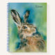 Ce carnet avec du texte personnalisé sur la couverture frontale présente des oeuvres d'art de la faune représentant un lièvre brun en profil alors qu'il danse en levrette. L'animal a de longues oreilles noires pointues et un oeil jaune perché.