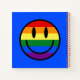 Cette oeuvre colorée présente un visage souriant arc-en-ciel.