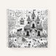 Sketchbook avec une page de coloriage à l'avant et à l'arrière dans un thème de conte de fées avec une princesse et licorne.