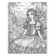 Carnet avec une page de coloriage sur le devant dans un thème de conte de fées avec princesse et châteaux.