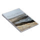 Une journée brumeuse et couverte à Morro Bay en Californie avec les vagues de l'océan qui frappent les rochers sur le rivage dans cette photographie de plage souvenir. Ce cadeau de notebook souvenir de photo de voyage en bord de mer comporte un script cursif noir au-dessus des rochers de la plage et un ciel gris.