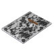 Motif tacheté en faux cuir noir et blanc avec votre nom sur dessin rectangle imprimé en faux cuir au dessus de l'avant.