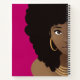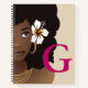 Carnet Femme noire, Fleur dans les cheveux, votre initial