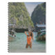 Carnet Femme sur le plan d'eau entre les bateaux marrons