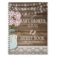 Laissez vos invités de baby shower écrire quelque chose spéciale à la maman - à-soyez. Ce guestbook adorable de baby shower montre une image de bois de grange avec de la ficelle des lumières, du pot de maçon rempli de marguerites roses et des empreintes de pas roses de bébé. Le livre d'invité est personnalisé avec le nom de mommys et la date de douche. Customisez tous les police, texte et couleurs. Pour voir des produits plus fabuleux, rendez visite svp "à la princesse de Hungarican - une boutique" @ zazzle.com/hungaricanprincess. Félicitations.