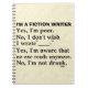 Si vous êtes un écrivain de fiction, vous avez probablement entendu toutes les questions auxquelles on a répondu sur ce dessin drôle. Maintenant, vous pouvez gagner du temps à discuter avec les crétins qui posent ces questions ineptes en affichant les réponses. Cela signifie plus de temps pour vous de vous cacher dans votre fauteuil de bureau, en écrivant des personnages bourdonnants basés sur ces buffets. C'est le design humoristique parfait pour vous ou votre ami d'auteur préféré.