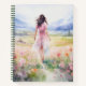Une belle aquarelle peinture d'une fille dans un pré de fleurs