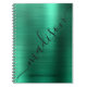 Signature de script monogramme en métal vert girly moderne personnalisées carnet spiral personnalisé. Ce design féminin avec un arrière - plan métallique brossé faux vert, un nom de signature manuscrit ou un modèle de texte monogramme. Le nom est écrit dans un très beau style de police tourbillonnant en forme de queue d'écharpe. Grand cadeau féminin pour les filles et les femmes pour l'école, bureau à la maison, affaires, anniversaire, mariage, douche nuptiale, fête de 16 ans sucrée, ou toute personne qui aime le style moderne jolie petite fille.