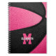 Ce mignon carnet en spirale sur le thème du basket présente l'image réaliste d'un ballon de basket abstrait surdimensionné qui a alterné des panneaux recolorés rose et noir - nom de l'athlète et monogramme, lettre de variété, ou numéro de maillot sont personnalisables sur la couverture - par katz_d_zynes
