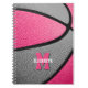 Ce mignon carnet en spirale sur le thème du basket présente l'image réaliste d'un ballon de basket abstrait surdimensionné qui a alterné des panneaux recolorés rose et gris - nom de l'athlète et monogramme, lettre de varsity, ou numéro de maillot sont personnalisables sur la couverture frontale - par katz_d_zynes