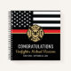 Cette conception comprend un drapeau de pompier avec des rayures noires et blanches, ainsi qu'une fine bande rouge. "Félicitations" et l'insigne d'un pompier est au-dessus du nom du pompier diplômé. Cette conception fonctionne également bien pour les pompiers, les lieutenants ou les chefs qui prennent leur retraite. Fêtez dans le style !