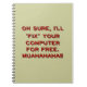 Ceci lit, "oh sure, je "fixera" votre ordinateur pour libre. Muahahaha ! !" Qu'est-il avec des personnes demandant si elles peuvent obtenir leurs ordinateurs fixes pour rien ? Que diriez-vous de quelques réparations libres de voiture, les réparations à la maison libres, peut-être un certain docteur libre visite-t-elles… ouais juste ?