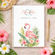 Un fond blanc élégant orné d'un flamant rose et de fleurs et feuillages tropicaux. Personnalisez et ajoutez un nom et vos initiales de monogramme.