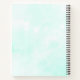 Carnet spiral avec une bordure abstraite le long du dessus avec des couleurs tourbillonnant vertes et bleues. Un design doux et estival. Une lumière croise la texture derrière l'image.