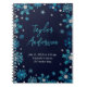 Ce carnet élégant et glamour présente des flocons de neige couleur bleu et argent en faux parties scintillant et des étincelles sur un arrière - plan bleu marine. Il peut être personnalisé avec les statistiques de naissance de votre bébé comme le nom, la taille, la date et l'heure de naissance, ou il ferait un grand cadeau.