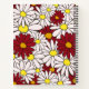 Fleurs sur arrière - plan vert, marguerites rouges blanches, motif floral simple.