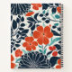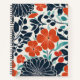 Fleurs brillantes écarlate et noir stylisées avec des accents turquoises poussiéreux sur un arrière - plan couleur lin crée un carnet spiral magnifique et élégant.
