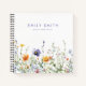 Ce design présente une bordure colorée de fleurs sauvages d'aquarelle dans les tons violet, or, vert et bleu.