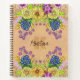 Il s'agit d'un carnet joliment conçu et personnalisable qui allie à merveille style moderne et élégance classique. La couverture du carnet est d'un beige chaleureux, offrant un décor neutre qui permet aux motifs floraux symétriques et vibrants de briller véritablement. Ces fleurs complexes, dans les tons bleu, jaune et violet, rayonnent des coins vers le centre, créant un équilibre visuellement agréable. La pièce maîtresse du design est un grand monogramme "K", qui ajoute une touche personnelle au carnet. Superposer le monogramme est le nom "Kristina", écrit dans une police de script élégante. Cette personnalisation fait du carnet le vôtre, parfait pour la journalisation, la prise de notes, ou comme cadeau spécial.