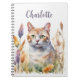 Fleurs de chats Aquarelle Ajouter Nom Lavender Orange carnet