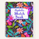 Sketch Book Jungle Flowers est un joli design de fleur de jungle brillante, mignonne avec de jolies couleurs, des fleurs, des feuilles, et des botaniques de toutes formes et tailles avec des pops de couleur sur arrière - plan foncé avec texte et contour violet. Personnalisez et Customisez pour répondre à vos besoins. ©️ Rosemarie Guieb