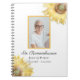 Les invités Invitations à laisser une note en souvenir de votre être cher après leur passage avec le joyeux Sunflowers Jaune Watercolor Celebration of Life Funeral Guest Book. Ce joli carnet d'hommage à la mémoire fleurie est orné d'une numériquement photo florale peinte en aquarelle de fleurs de tournesols jaunes ornant les coins d'un arrière - plan blanc. Personnalisez-le avec la date de naissance et de décès, le nom et la photo du défunt.