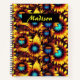 Gardez vos notes dans ce beau carnet de tournesol. Ce motif de tournesol lumineux, jaune, marron et turquoise égaye la journée. Ce carnet peut être personnalisé avec un nom et ferait un merveilleux cadeau.